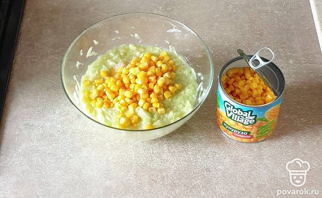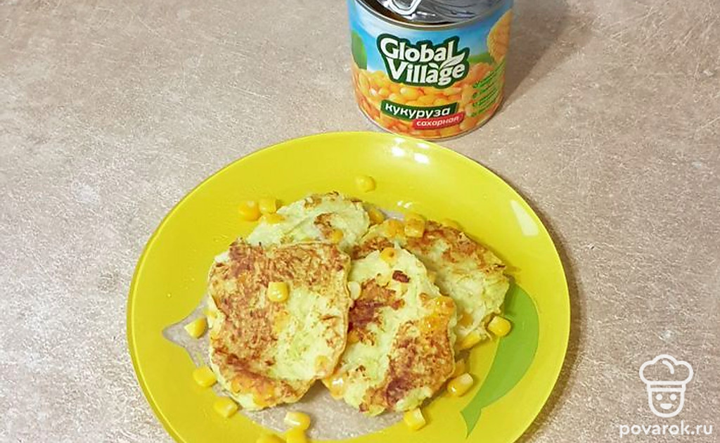 Нежные оладьи из кабачков и кукурузы с добавлением кукурузной муки.