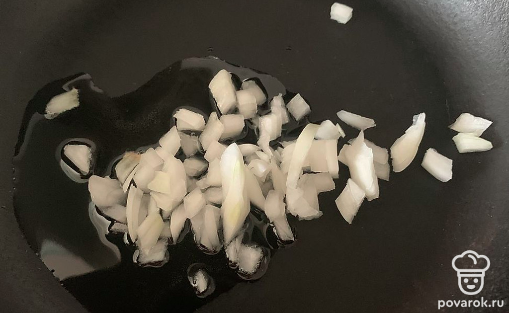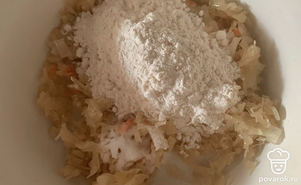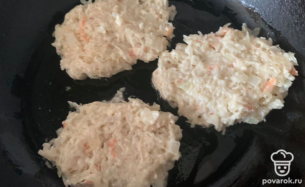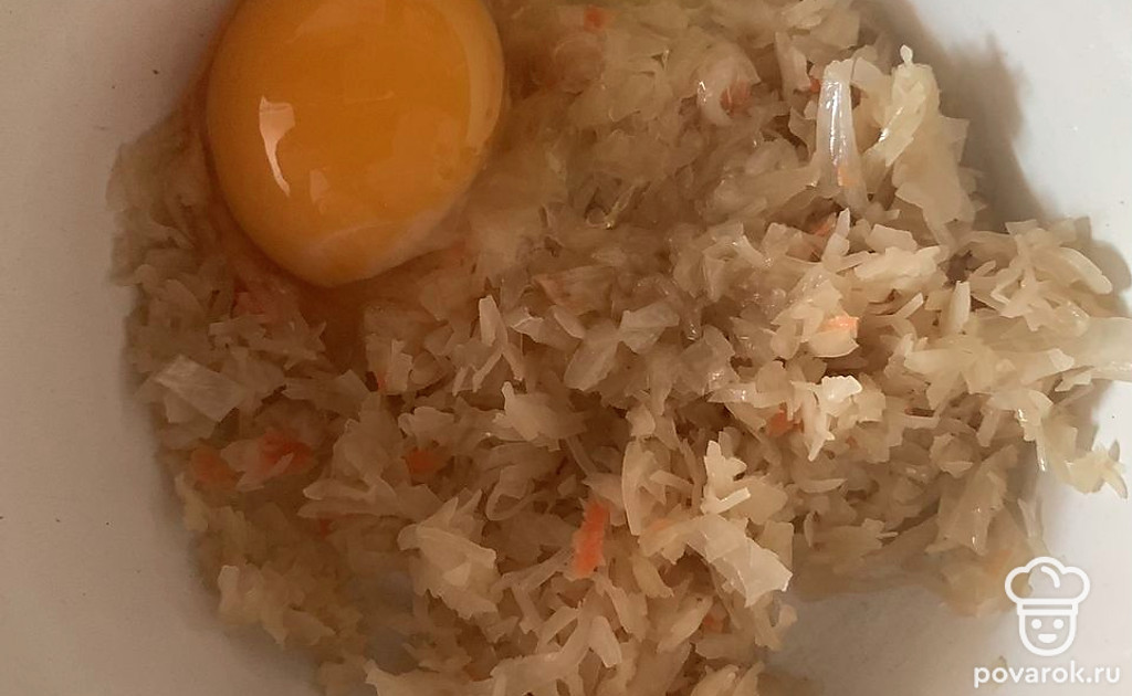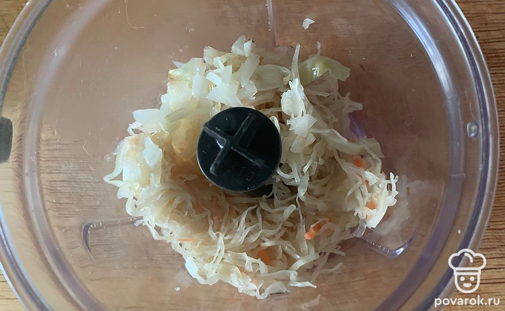 В чашу блендера выложить капусту и обжаренный лук, измельчить.
