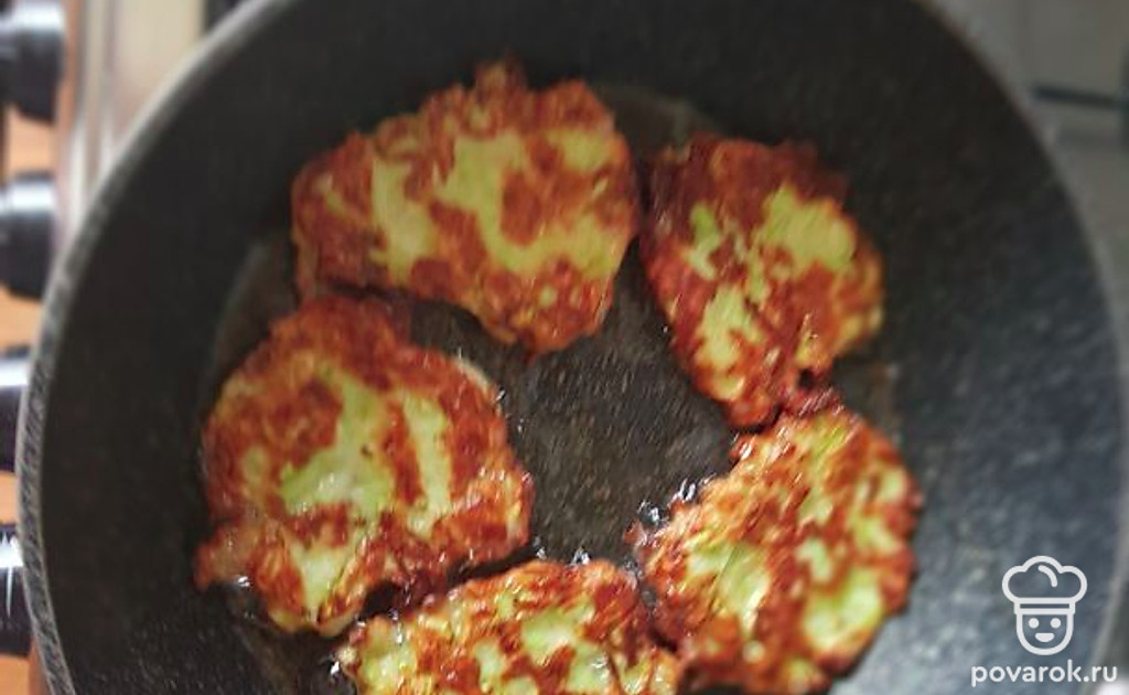 Жарить около минуты с каждой стороны, без крышки, на среднем огне. Томить до золотистого цвета.