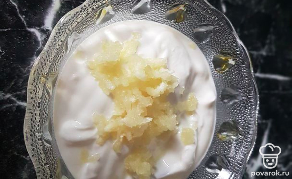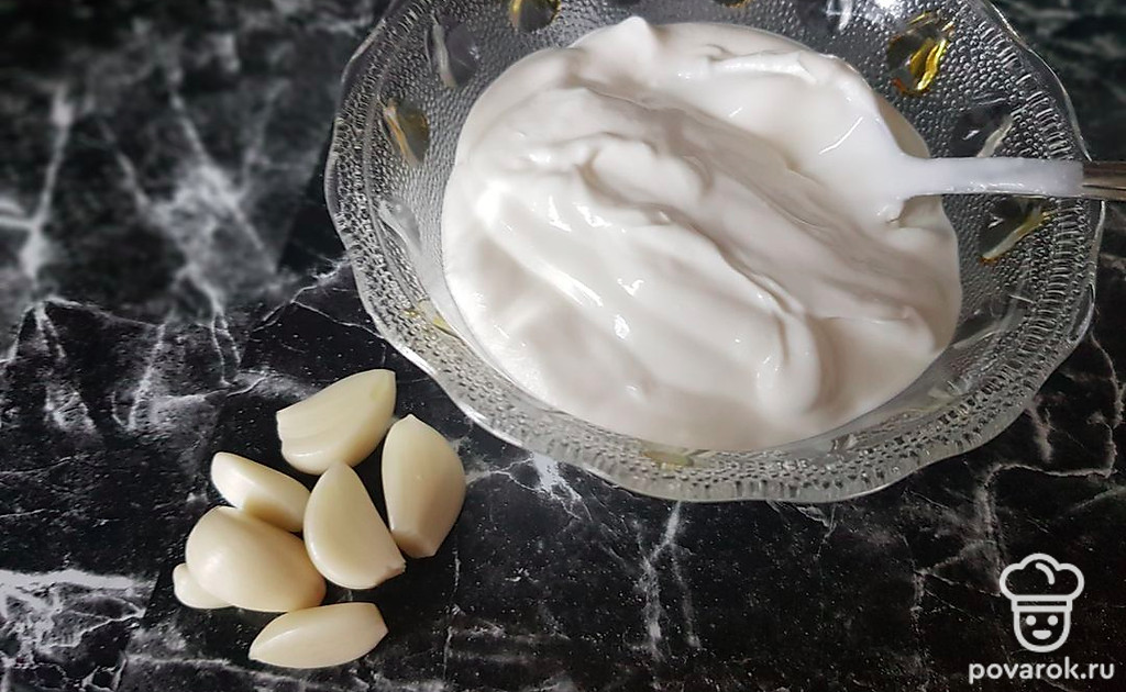 Приготовить сметанный соус. Нам понадобятся сметана и чеснок.