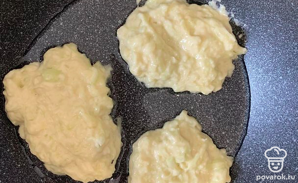 На сковородку налить масло. Положить смесь из кабачков, сформировать оладушки и обжарить с двух сторон.
