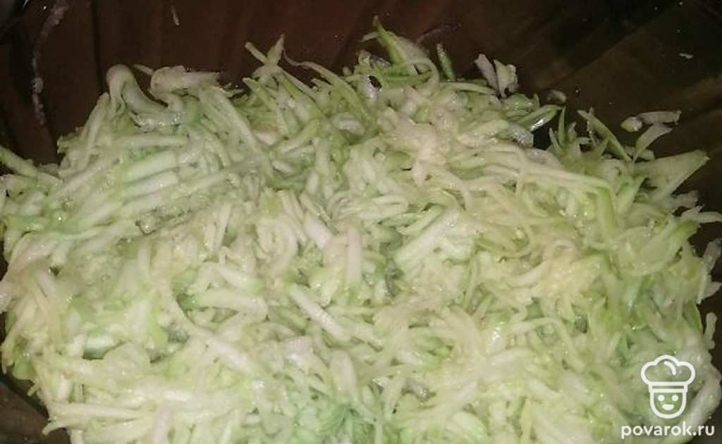 На терке натрите кабачок и лук, отожмите лишнюю воду.