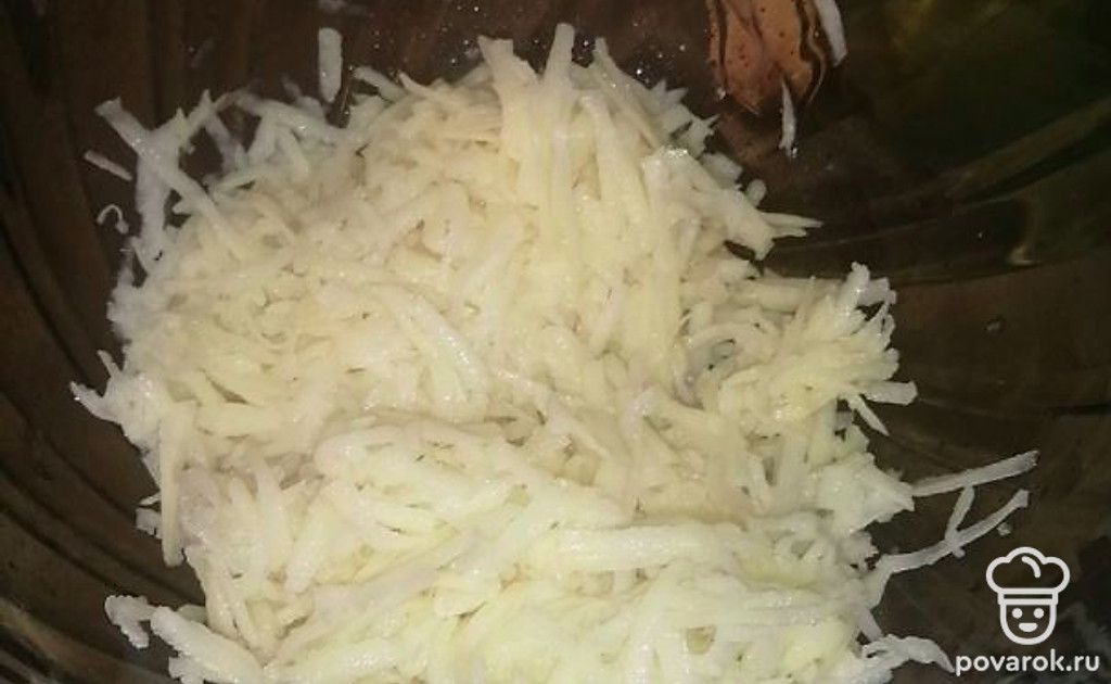 Натрите на крупной терке картошку. Можно добавить сыр и чеснок.