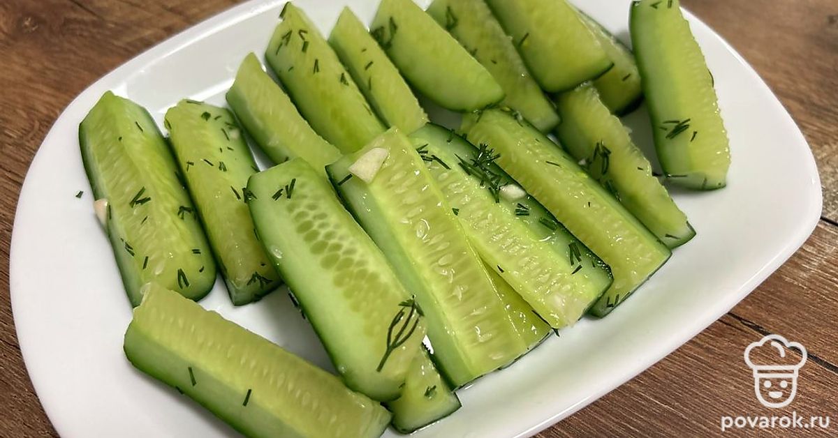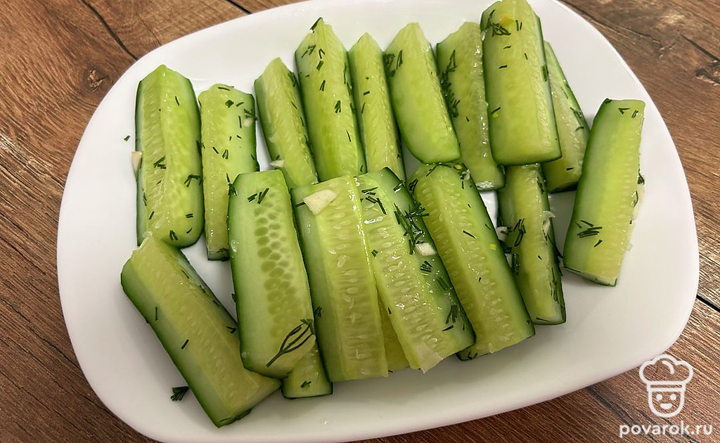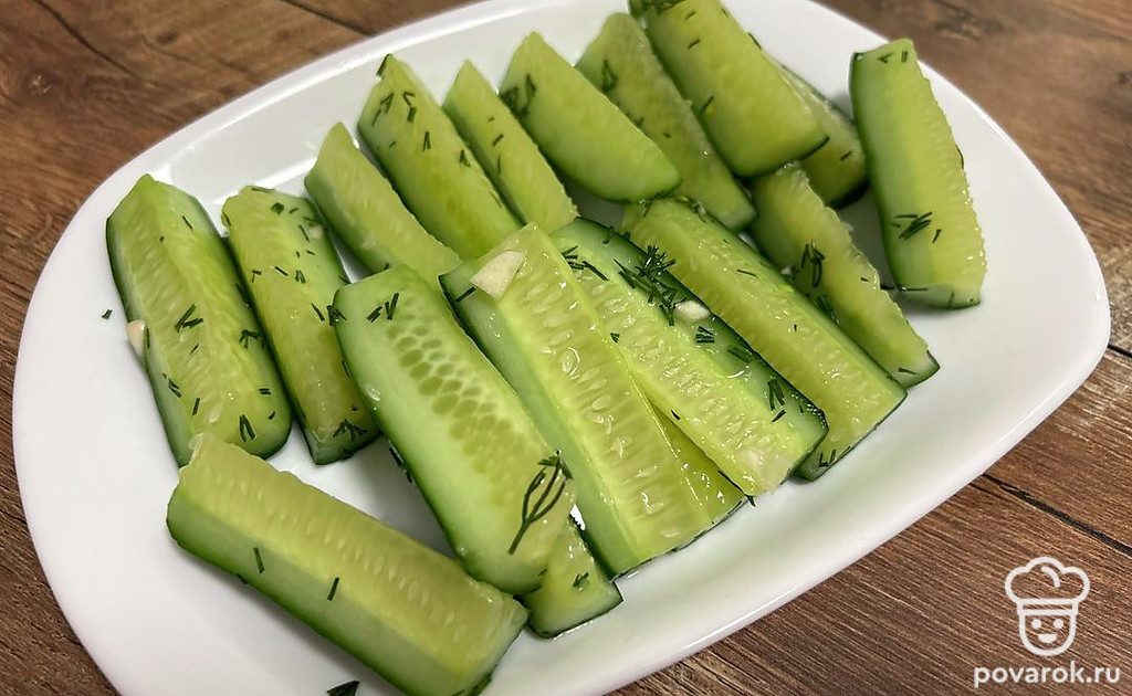Огурцы переложите в тарелку и подайте к столу. Приятного аппетита!