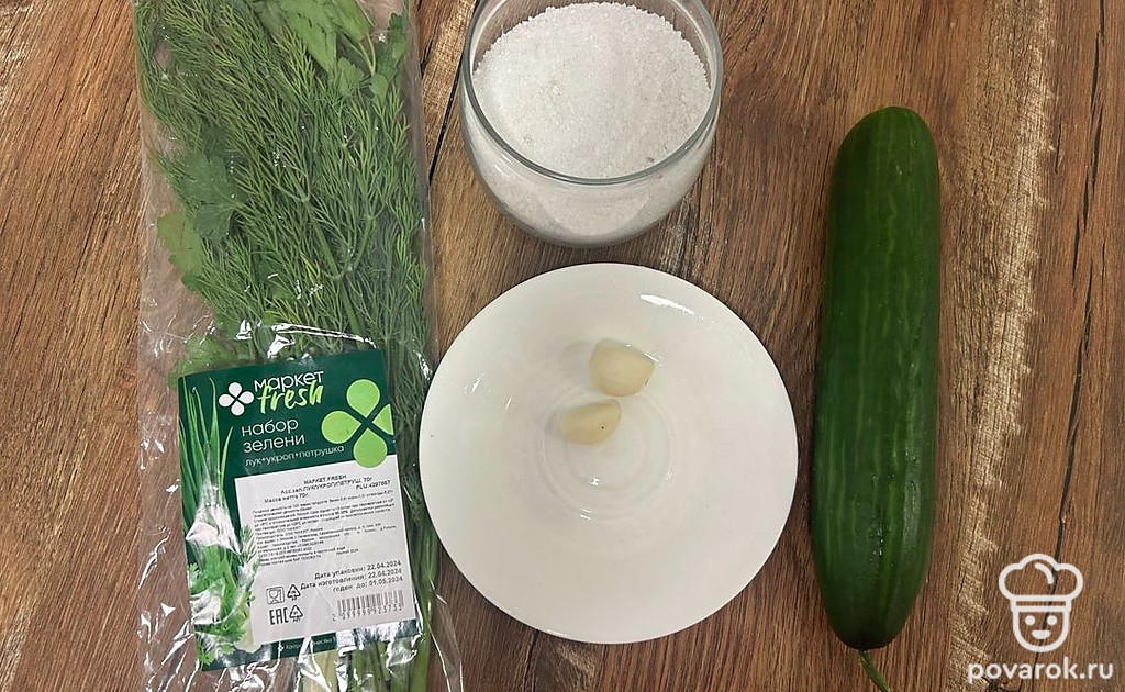 Добавьте измельченный чеснок, укроп, соль и воду.