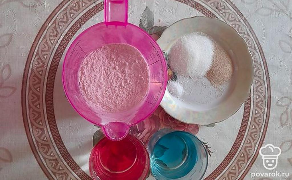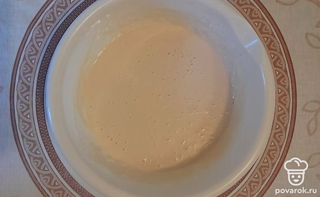 Всыпьте просеянную муку. При помощи венчика тщательно перемешайте все ингредиенты. Прикройте крышкой и оставьте на 20-30 минут.