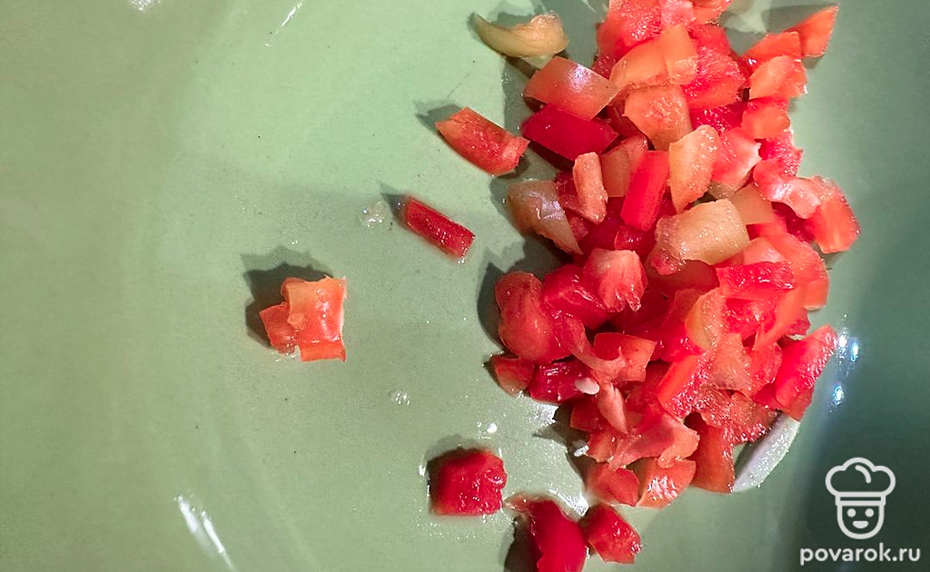 Перец нарезаем.