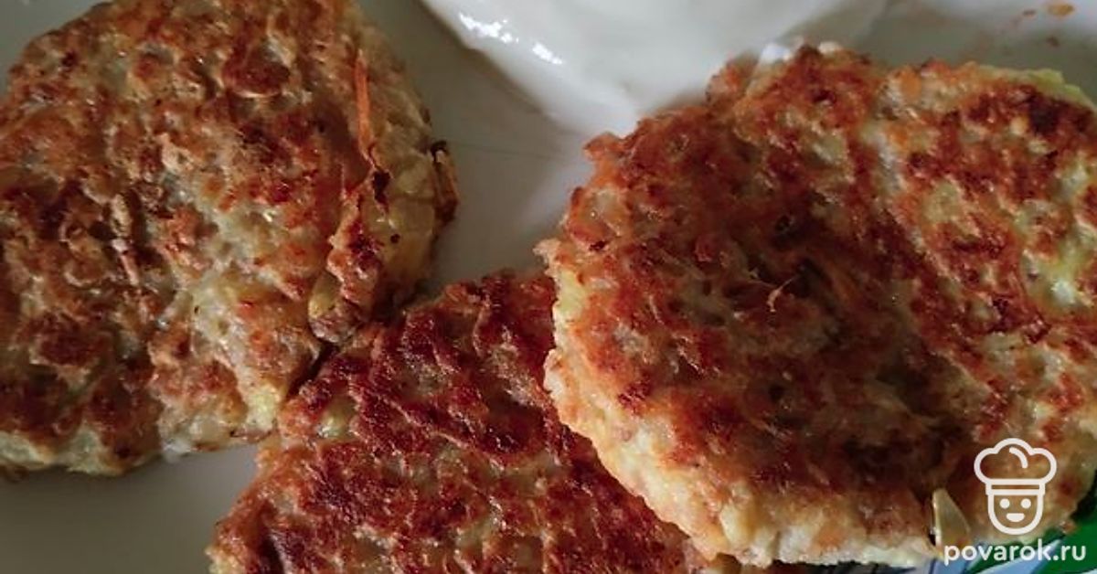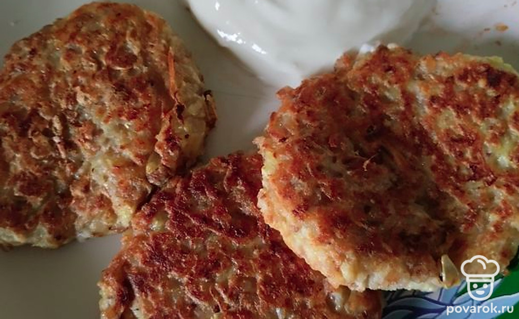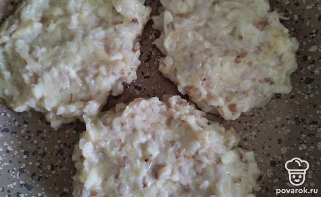 Перемешать отваренную гречу, кабачок, яйцо, нарезанный чеснок, соль, муку. Обжарить на небольшом огне с двух сторон, до готовности.
