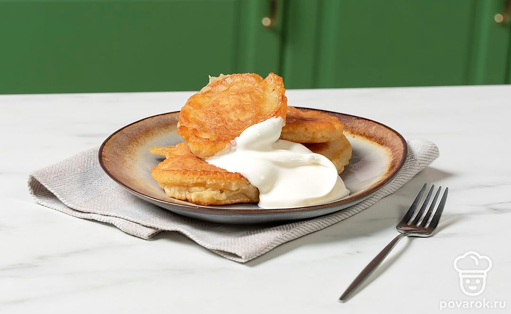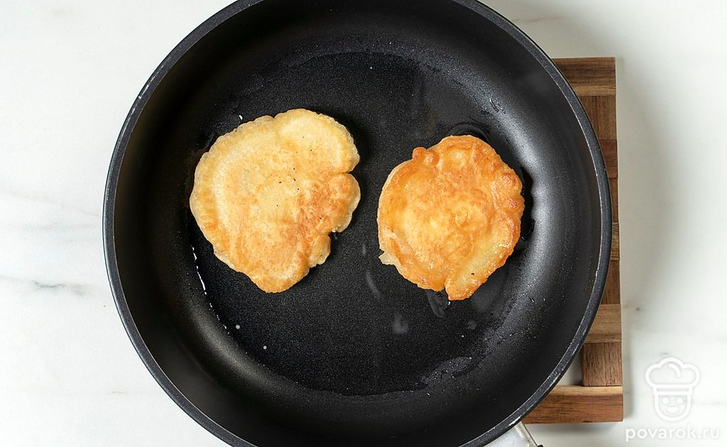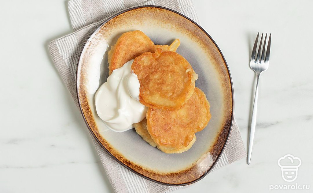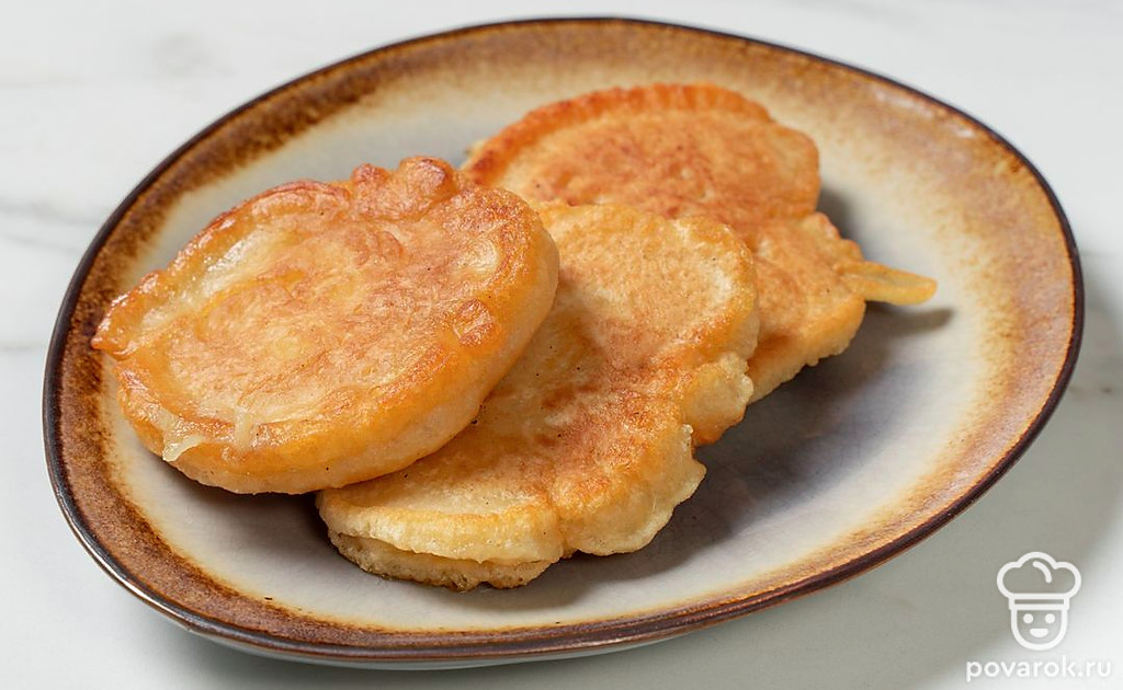 Эти пышные оладушки можно приготовить просто на воде, без кефира или кислого молока. Для них потребуются только мука и яйца. За пышность в тесте здесь отвечает сода, которую следует погасить уксусом. Жарить оладушки нужно на широкой сковороде на умеренно сильном огне. Так они не будут слипаться друг с другом в процессе жарки или подгорать, но вместе с тем хорошо пропекутся внутри.