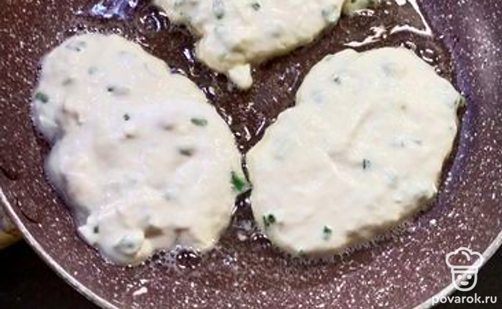 На сковородку выкладываем по ложке. Обжариваем до готовности с двух сторон, минут по 5-7 с каждой стороны.