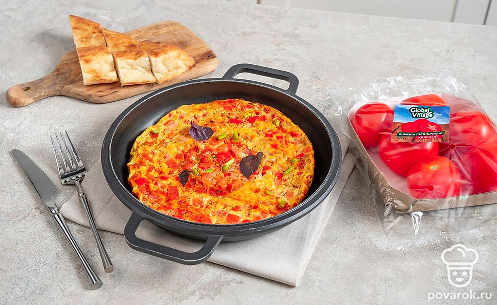 Менемен — это турецкий омлет. Его готовят с овощами. Как правило, это блюдо достаточно острое, ведь это национальная особенность страны. В такой традиционный омлет обычно кладут острый перчик, но его вполне можно заменить паприкой или болгарским перцем. Это блюдо принято есть руками, зачерпывая из сковороды кусочком лепешки.