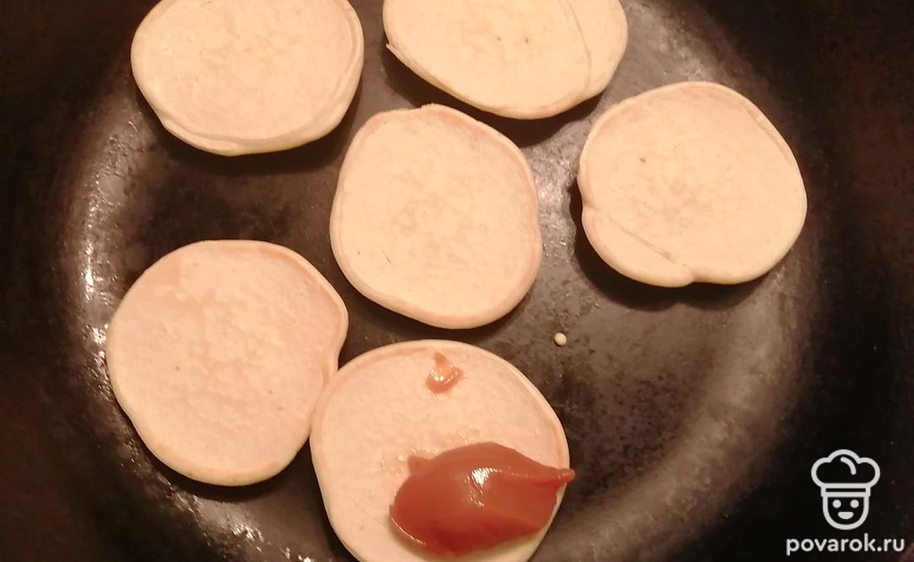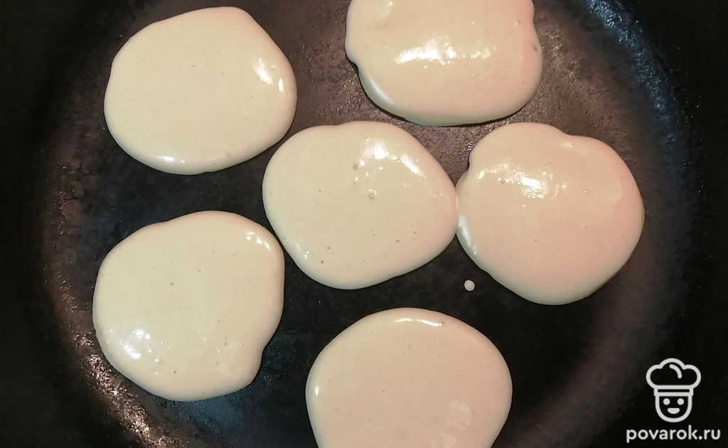 На хорошо разогретую сковороду выкладываем тесто. Жарим 5 минут и переворачиваем.