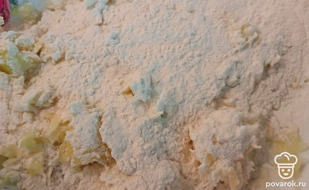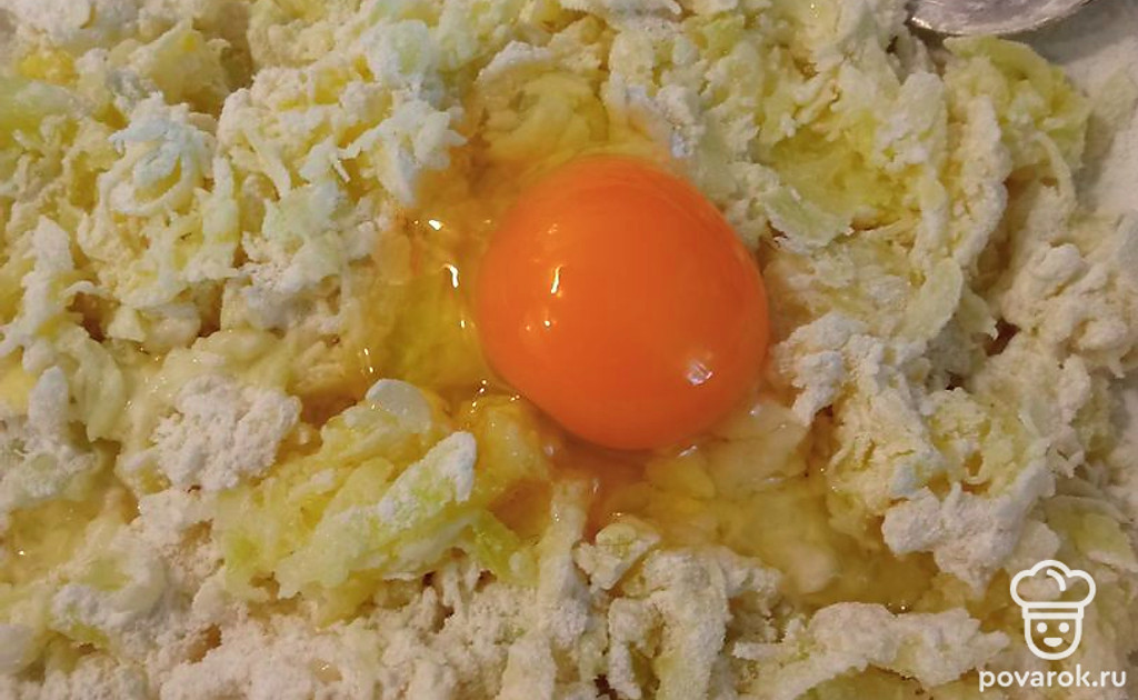 В кабачок добавить муку или крахмал. Муку можно использовать любую: рисовую, пшеничную. Перемешать.