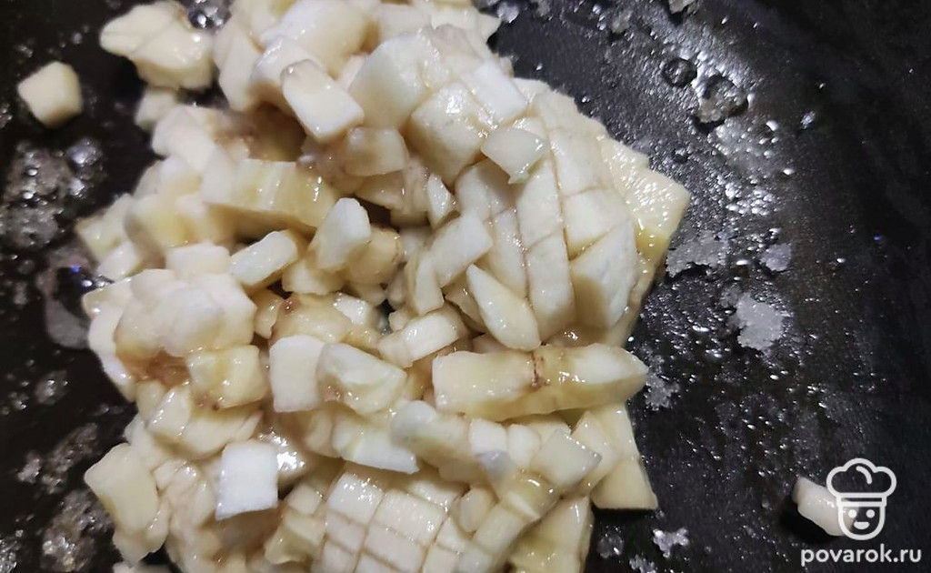 Обжарьте банан 3 минуты с 1 чайной ложкой сахара.
