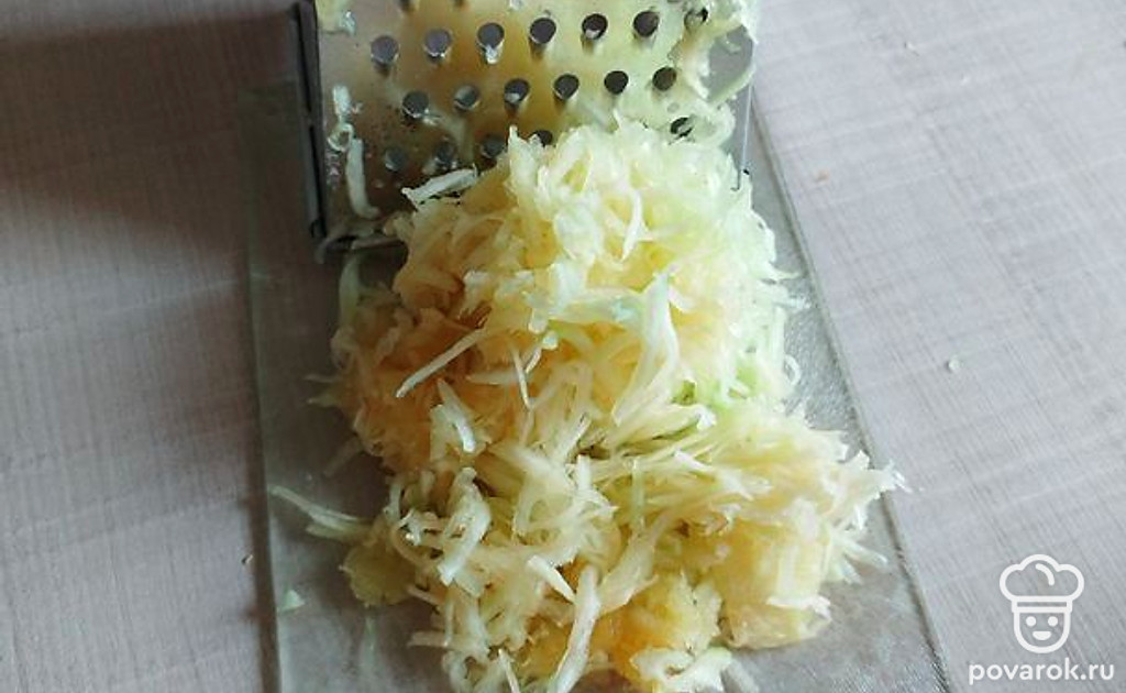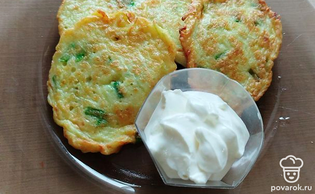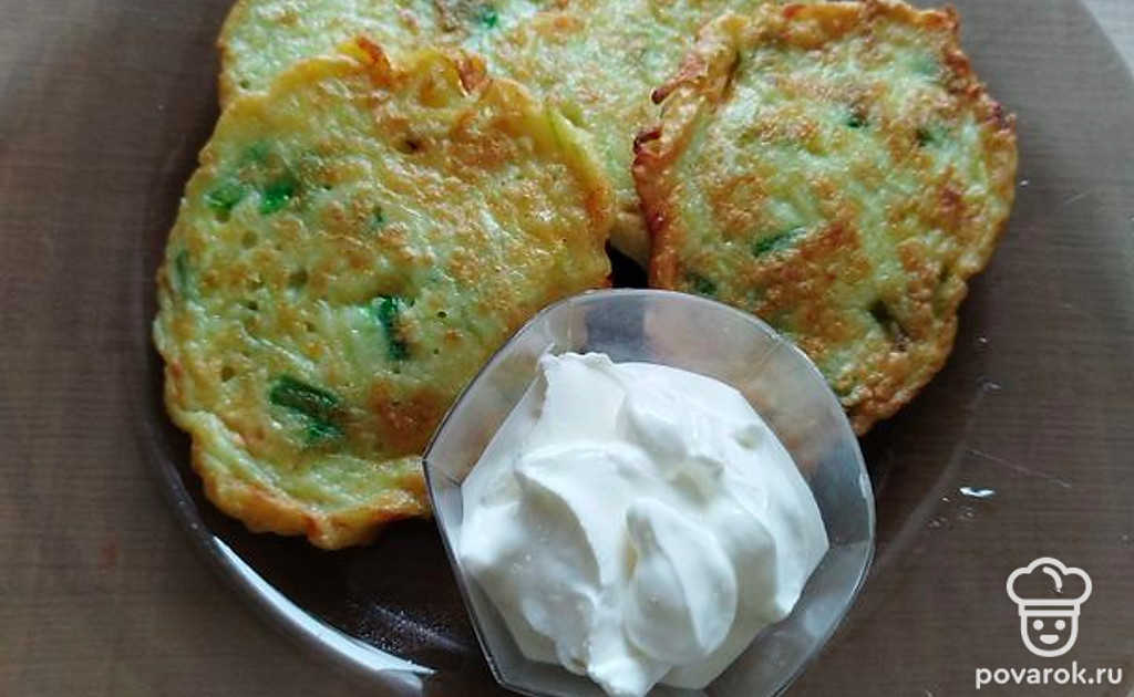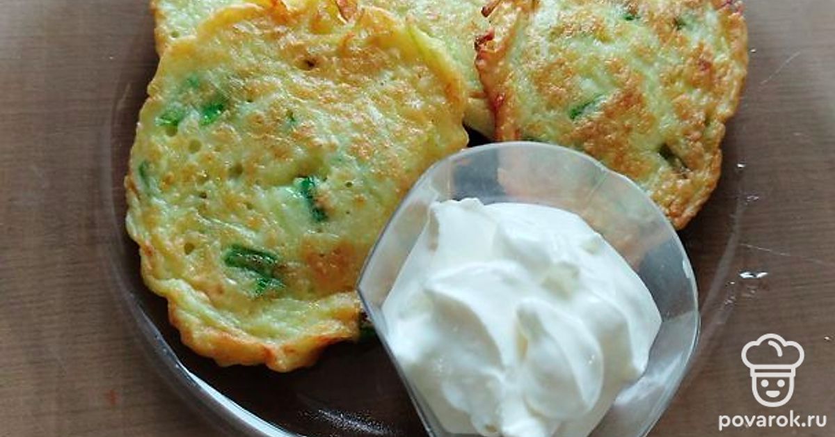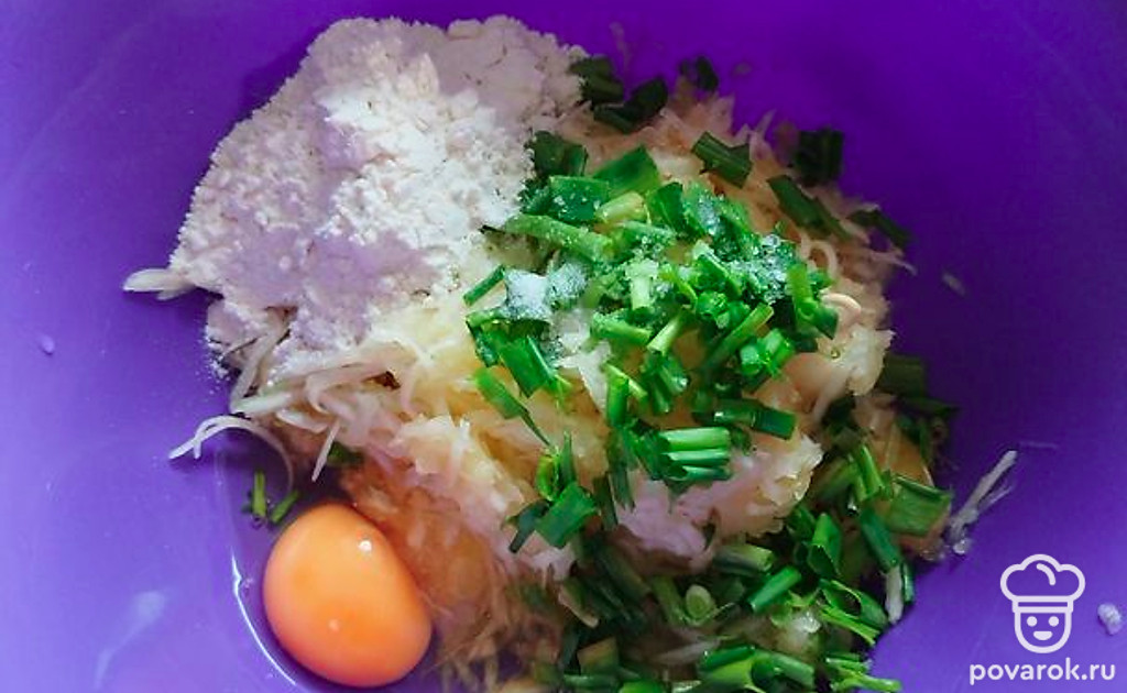 В отдельной миске соединяем кабачок, муку, соль, яйцо, зеленый лук. Все хорошо перемешиваем.