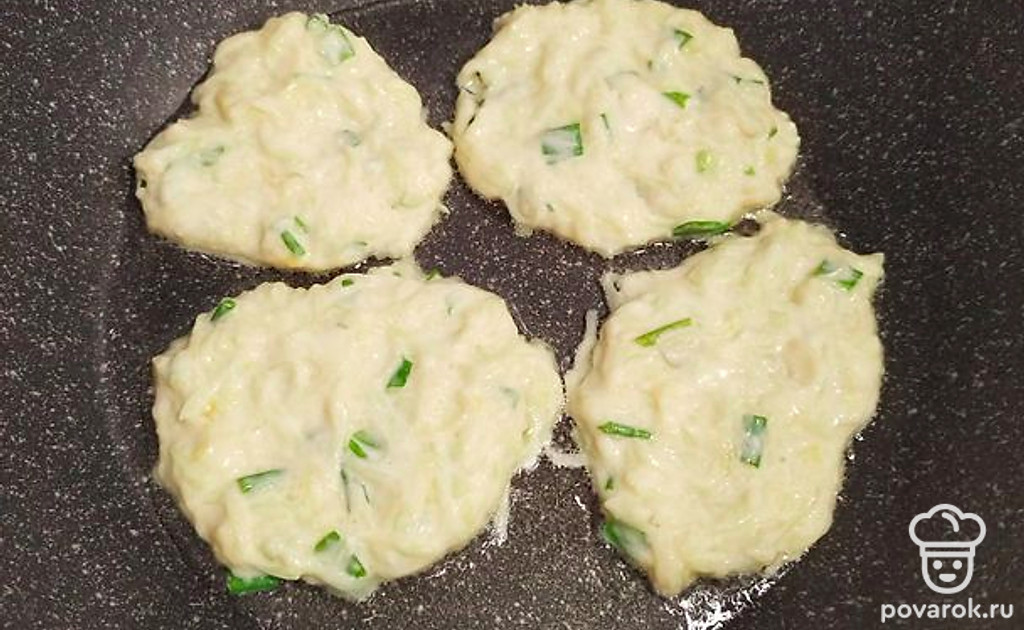 В сковородку наливаем растительное масло и столовой ложкой формируем оладьи. Жарим на среднем огне с обеих сторон до появления румяной корочки.