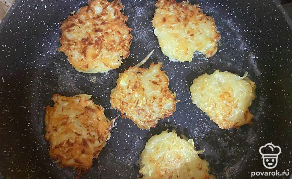 На горячую сковороду с растительным маслом выложите оладушки столовой ложкой, немного их разравнивая. Пожарьте оладушки с обеих сторон.