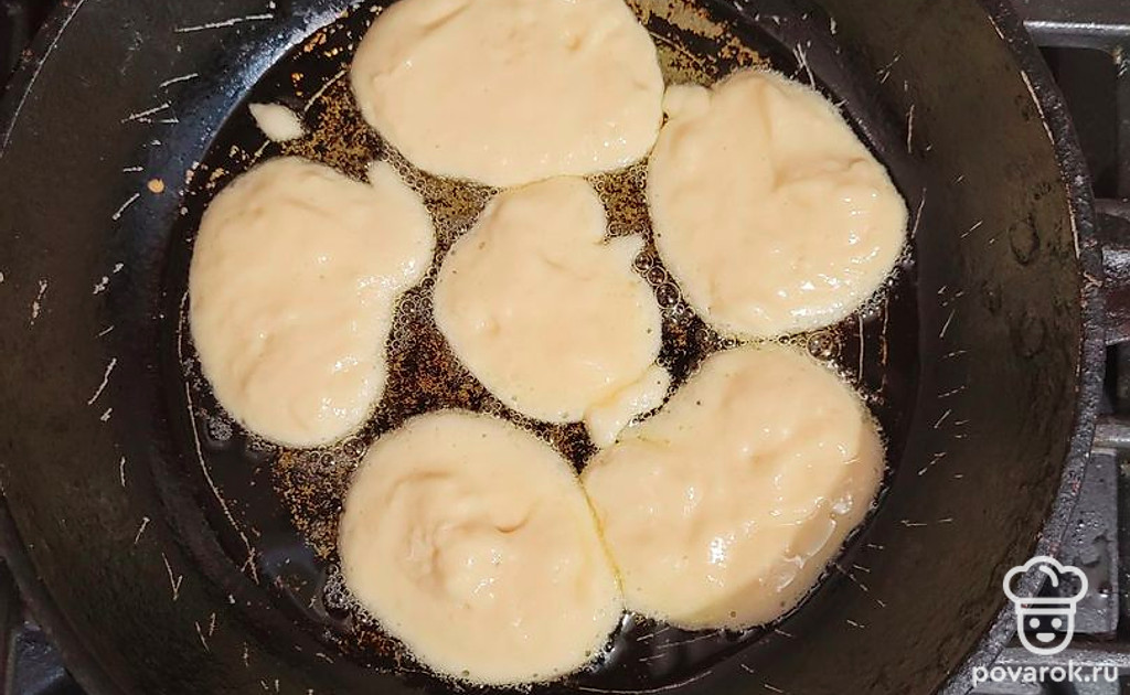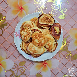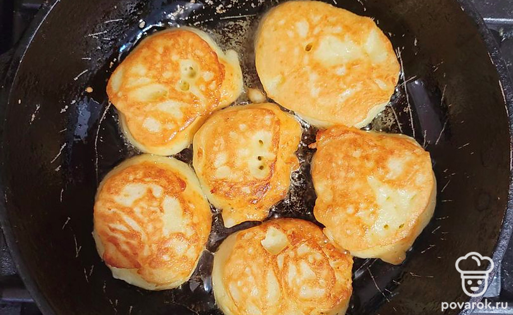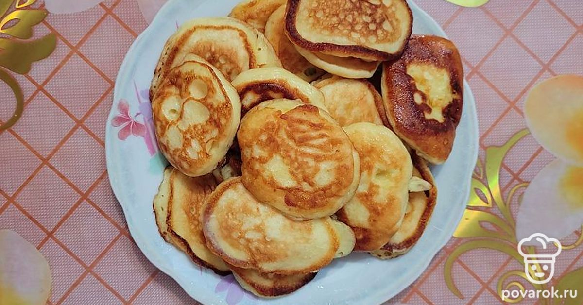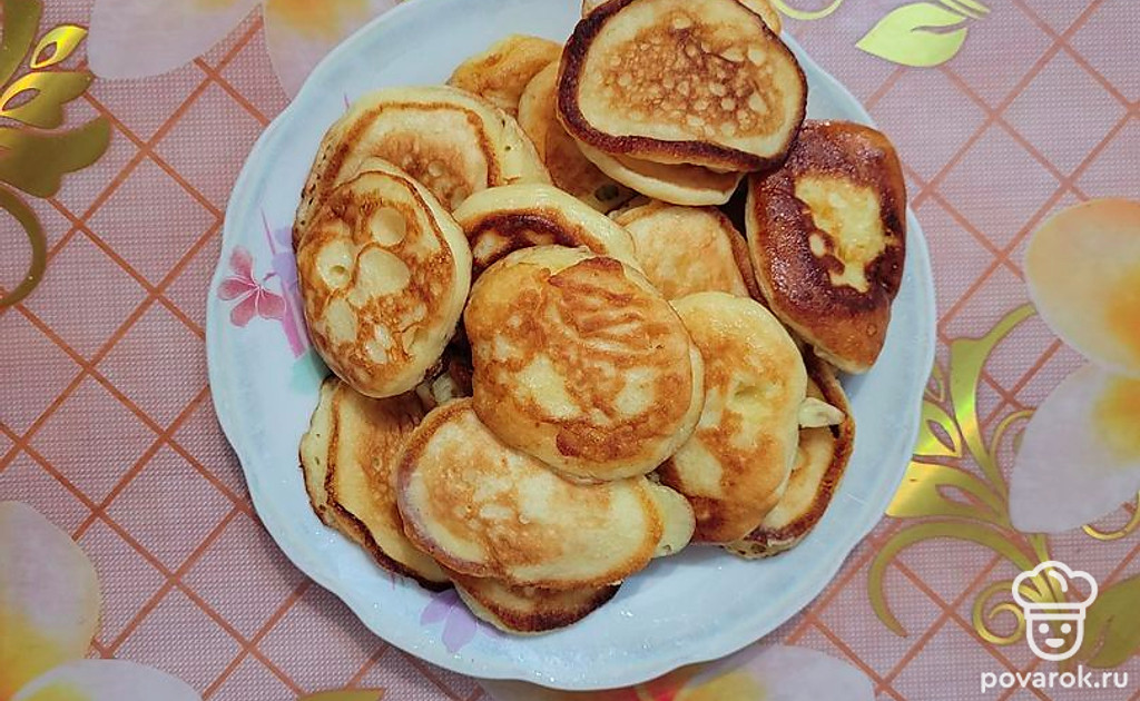 Оладьи, приготовленные по этому рецепту, готовятся быстро и просто, а получаются очень нежными, пышными, пористыми и вкусными. Главный секрет приготовления этого блюда в том, что нужно использовать теплый кефир.