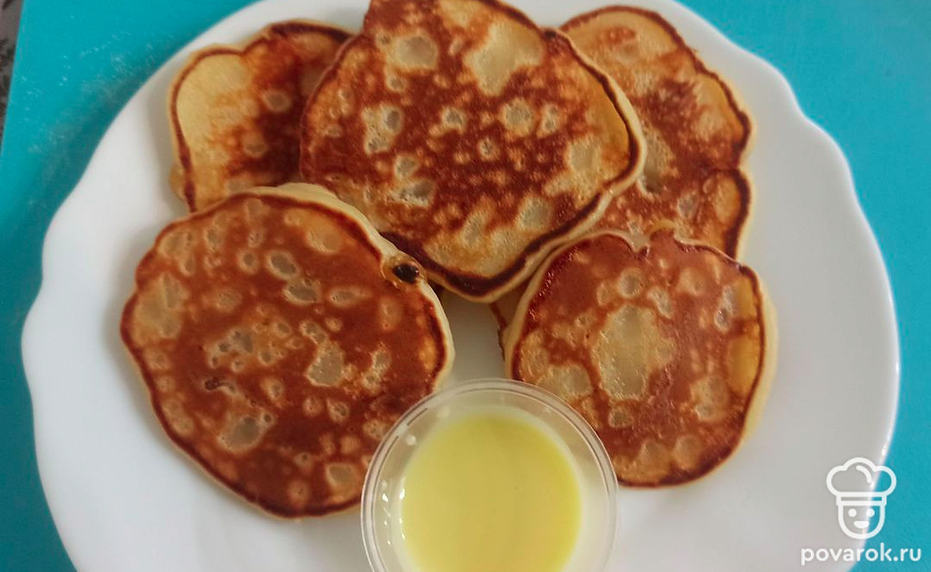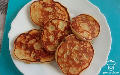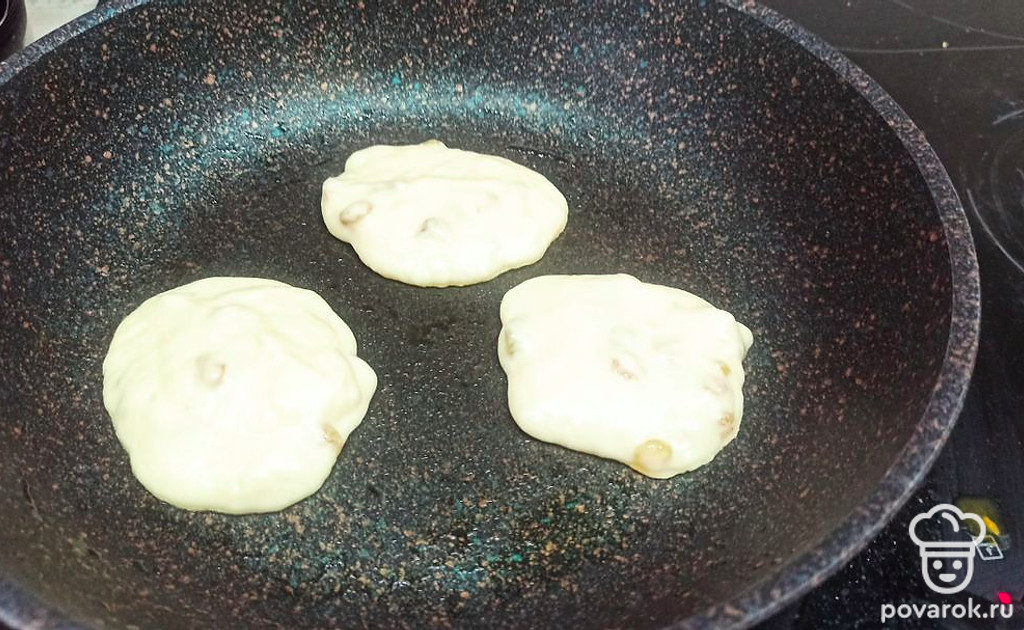 Ложкой выложите тесто на сковороду. Выпекайте оладьи на растительном масле по 2 минуты с каждой стороны.