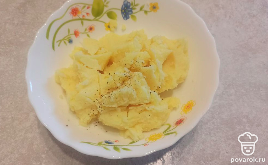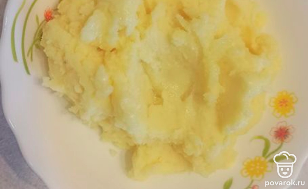 Картошку чистим, режем и отвариваем в подсоленной воде в течение 30 минут, затем делаем пюре.