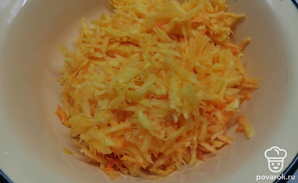 Тыкву натрите на крупной терке.