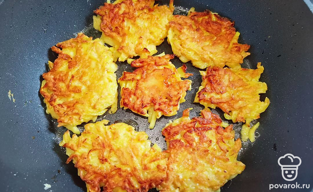 Обжаривайте оладьи с двух сторон до золотистой корочки.