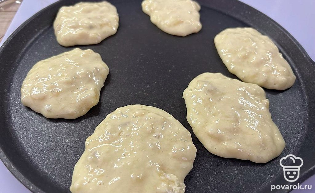 На разогретую сковородку выложите ложкой небольшое количество теста.