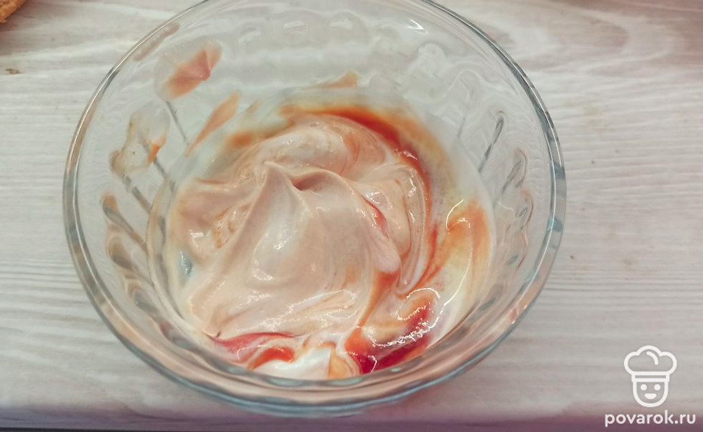 Томатную пасту смешайте со сметаной.