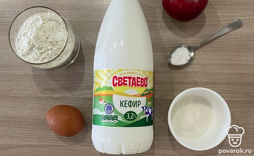 Подготовьте все ингредиенты. Достаньте кефир и яйцо из холодильника. Все ингредиенты должны быть комнатной температуры.