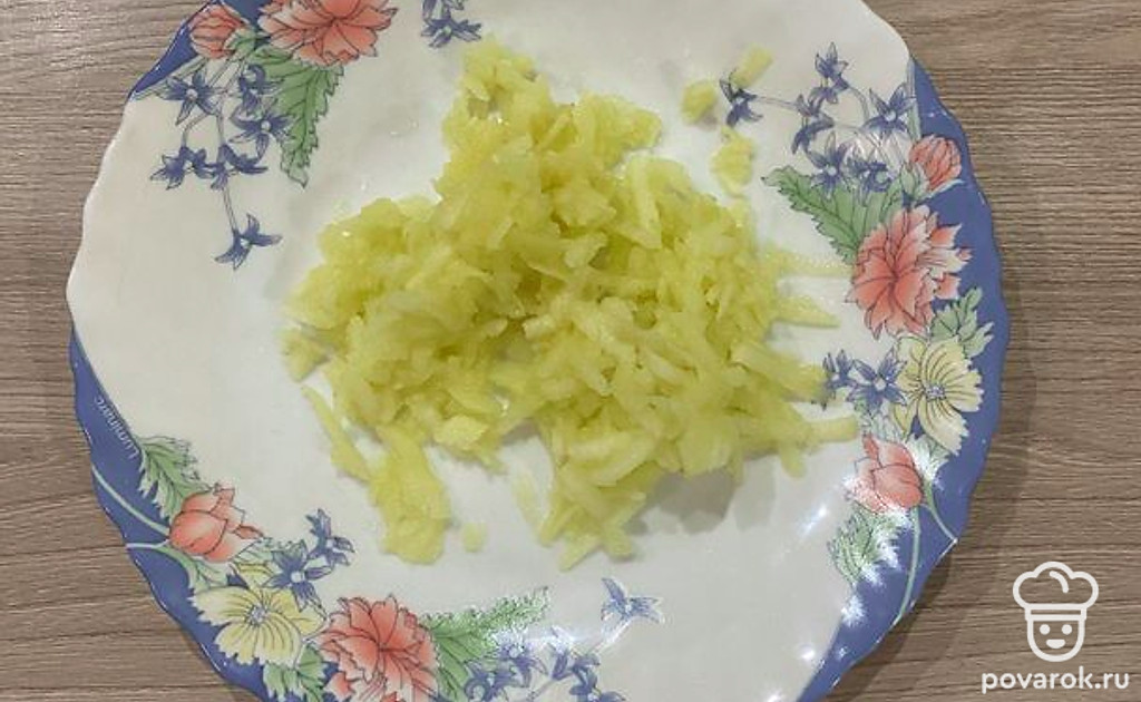 Натрите на крупной терке очищенное от кожуры яблоко.