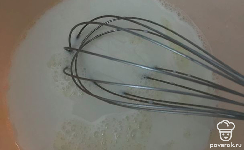 Влейте молоко, хорошо перемешайте.