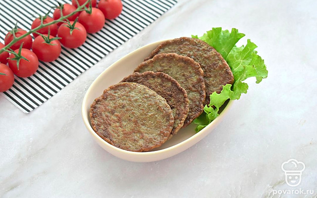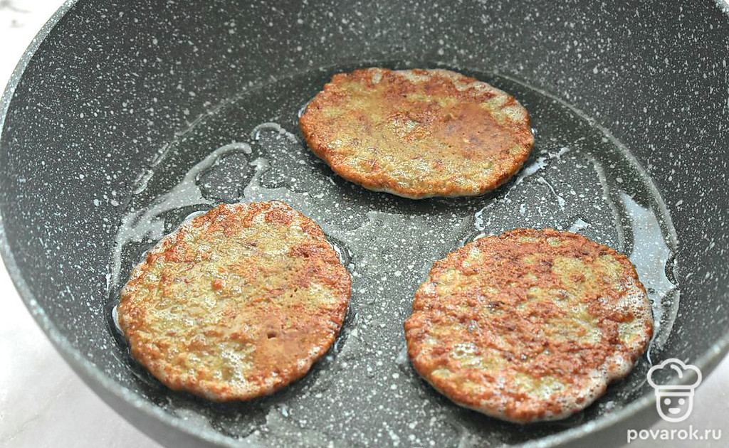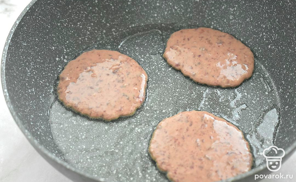 Жарьте печеночные оладьи примерно по 2,5-3 минуты с каждой стороны.