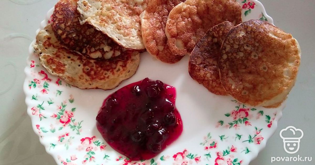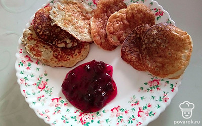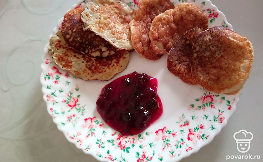 Подавайте оладьи с вареньем или сгущенным молоком.