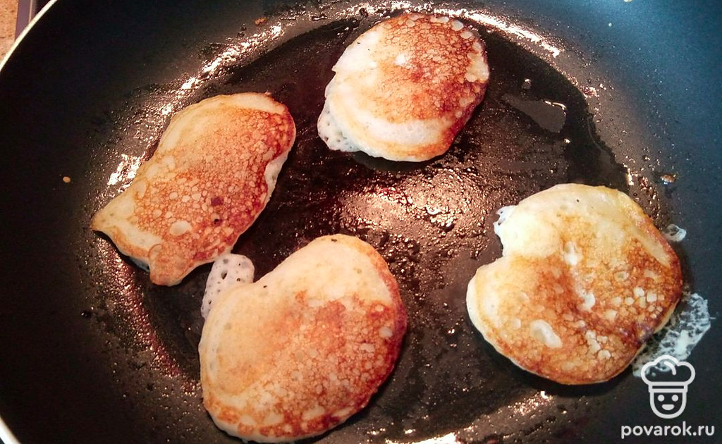 Особенность этих оладушек в том, что вместо сахара добавляется сахарная пудра. Поэтому они имеют ванильный вкус.