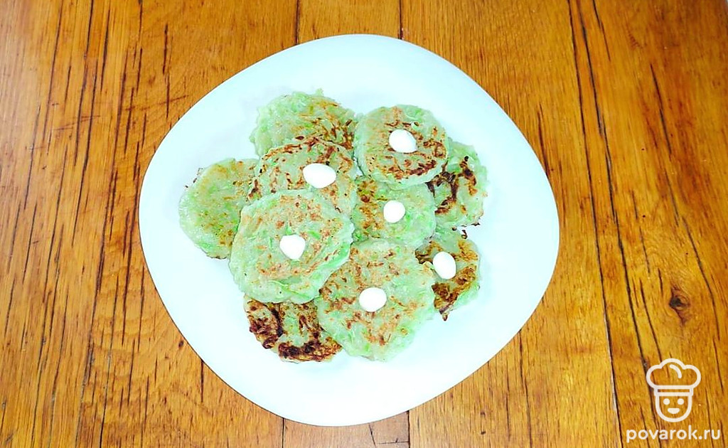 Оладьи украсьте чесночным соусом. Приятного аппетита!