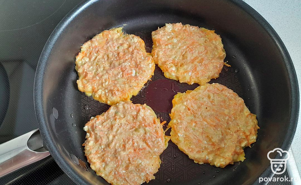 На разогретую сковороду, смазанную растительным маслом, выложите тесто, сформируйте оладьи. Обжарьте с двух сторон до румяной корочки. Из указанного количества ингредиентов получится 8 штук.