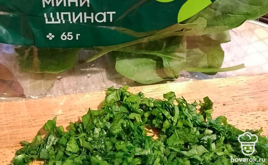Листья шпината измельчить.