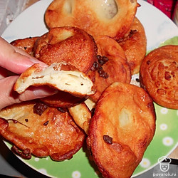 Жарю на большом количестве масла на среднем огне. Вынимаю шумовкой, чтобы стек весь жир. Оладьи такие пышные только во время жарки. Потом они осядут и станут плоскими.