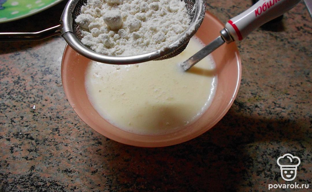 Добавить 3 столовых ложки просеянной муки.