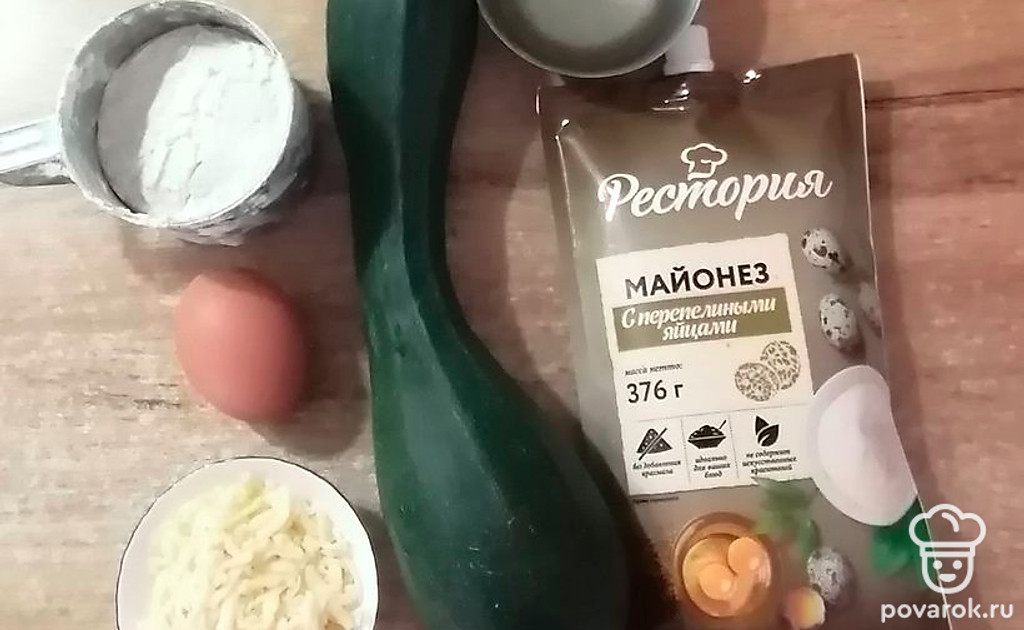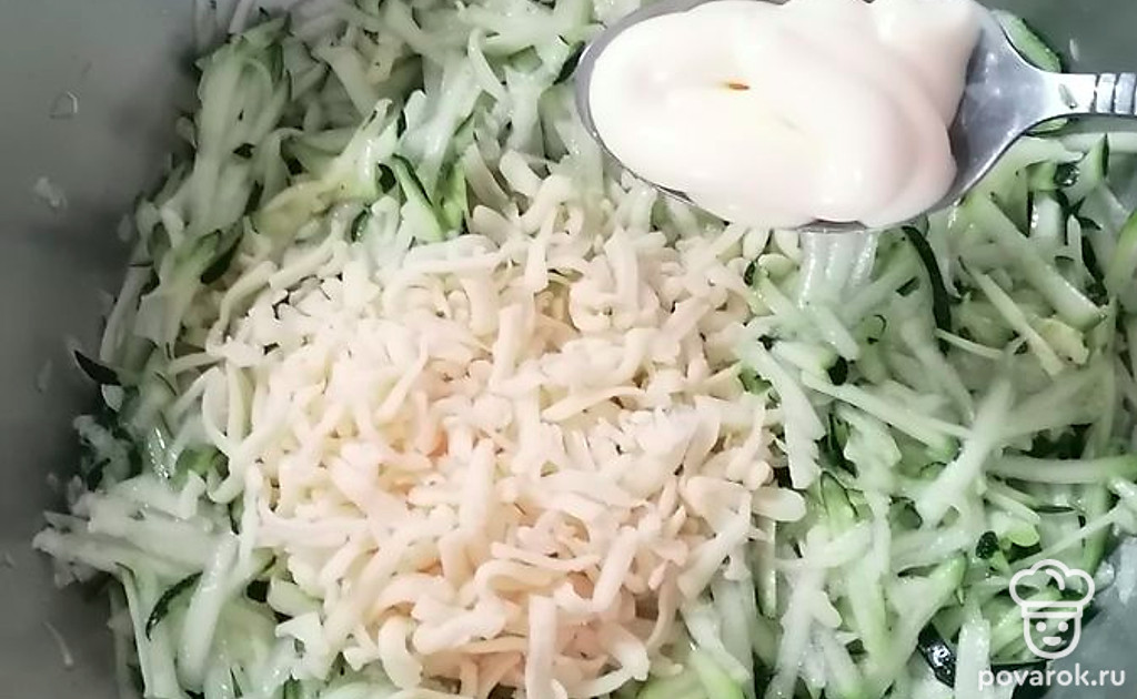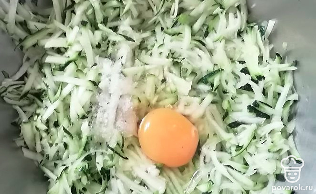 Кабачок натрите на крупной терке, добавьте яйцо и соль, хорошо перемешайте.