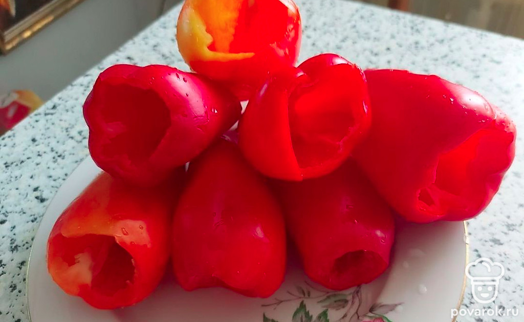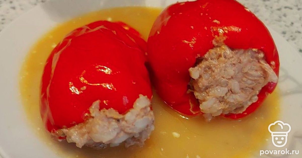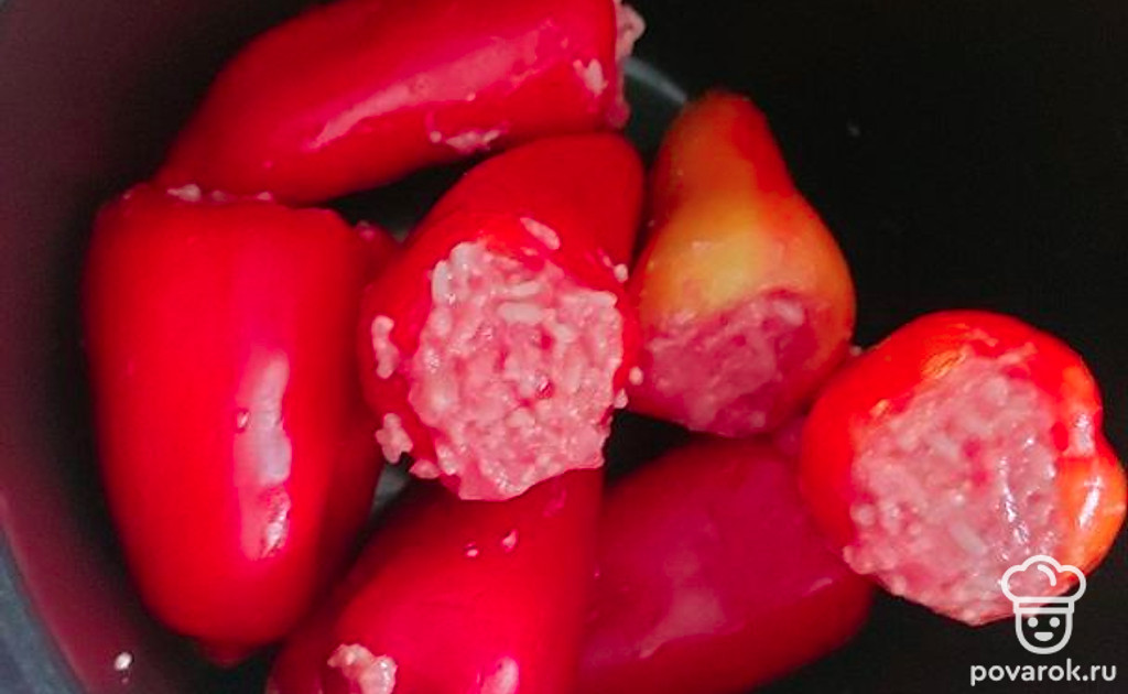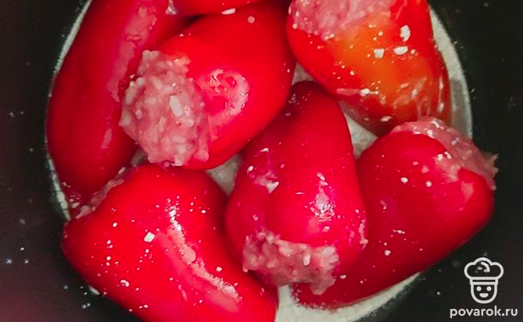 Далее начините перцы фаршем с рисом. Выложите в мультиварку.