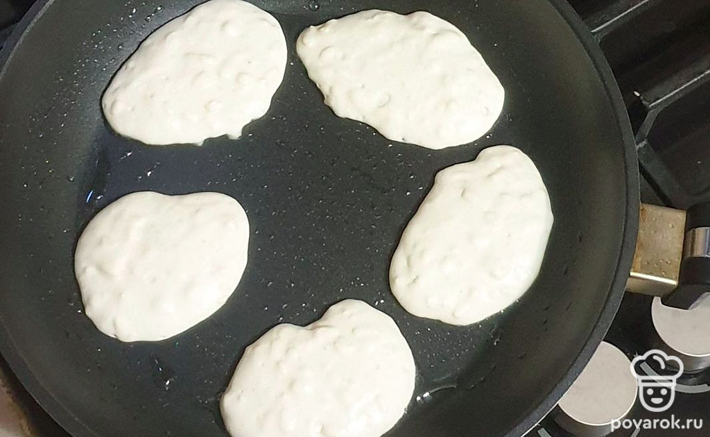 На разогретую сковороду выложите тесто, формируя оладьи. Обжарьте с каждой стороны 3-4 минуты на небольшом огне.
