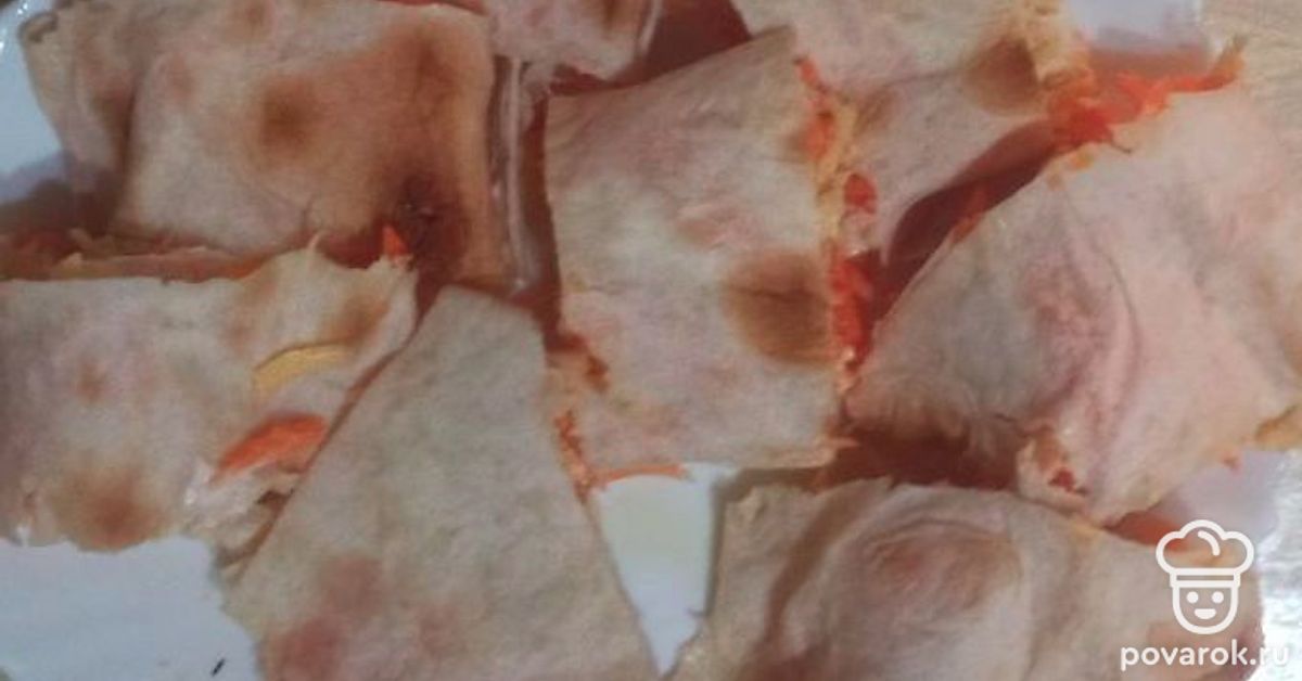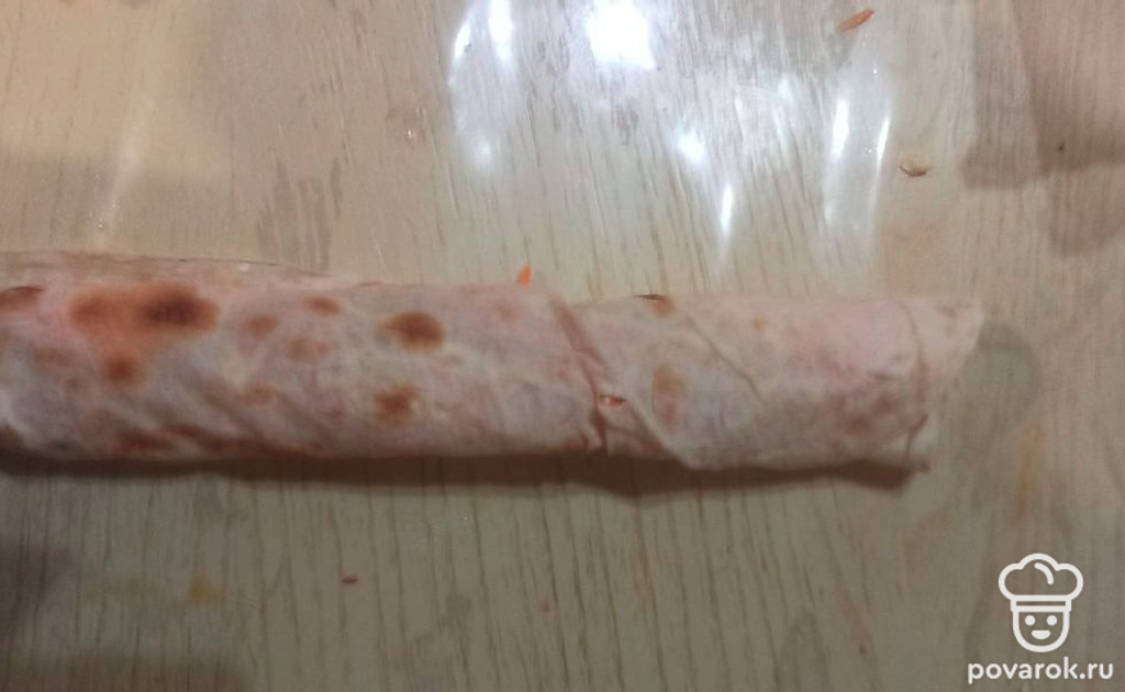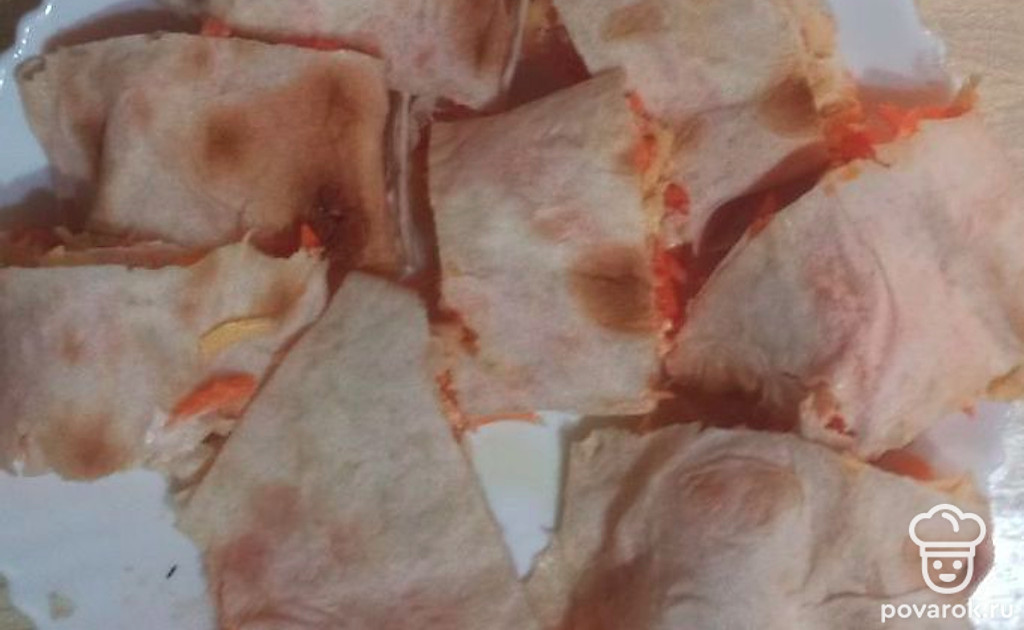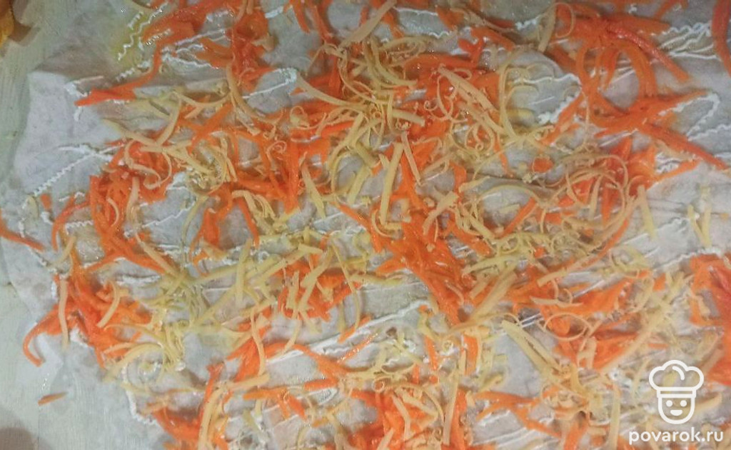 На лаваш, смазанный майонезом, выложите сыр и морковь.