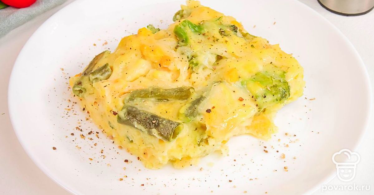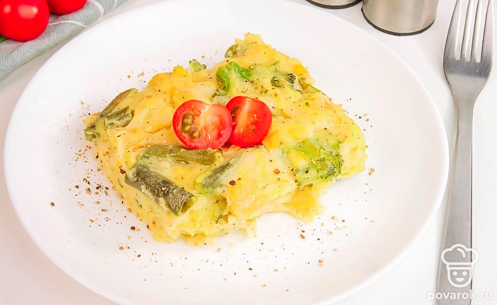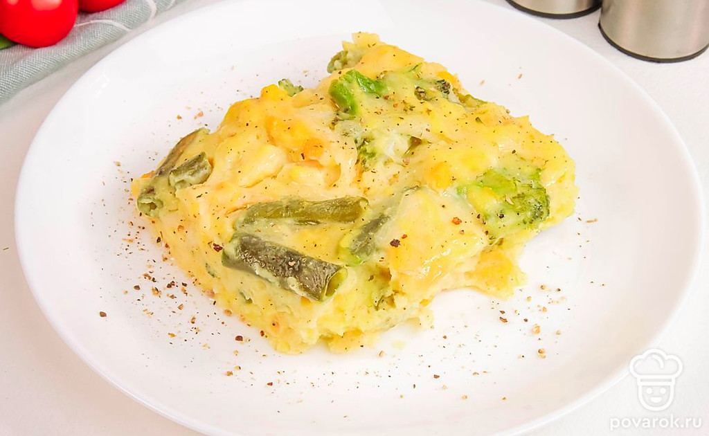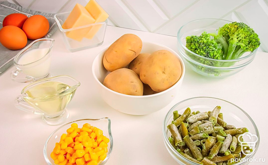 Картофель — популярный продукт, с которым можно приготовить массу вкусных и сытных блюд. Его отваривают, запекают, жарят, а также с ним можно приготовить вкусную запеканку. В этом рецепте предлагаем вам приготовить запеканку из картофеля со стручковой фасолью, кукурузой, брокколи и сыром. Она получается очень вкусной и низкокалорийной, что отлично подойдет тем, кто следит за своей фигурой.