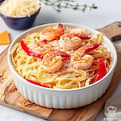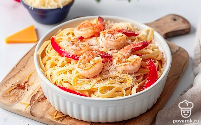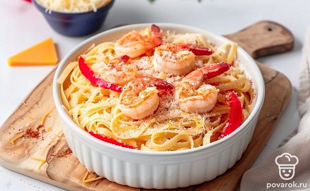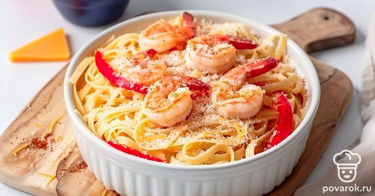 Приготовьте необычную пасту. В этом рецепте мы будем не только варить, но и запекать ее в духовке. Так что на выходе получится очень сытная и ароматная макаронная запеканка. В качестве начинки мы взяли овощи и креветки — то что нужно для полноценной трапезы. Так что блюдо точно понравится приверженцам здорового питания. Подайте запеканку еще горячей, дополнив порцию легким овощным салатом.
