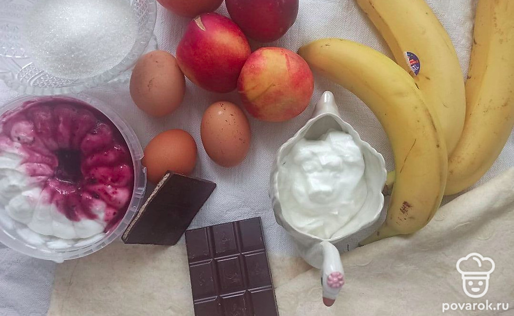 В этом рецепте вполне можно обойтись без добавления сахара – сладости фруктов и шоколада вполне достаточно. Это сделает блюдо менее калорийным и полезным для здоровья.