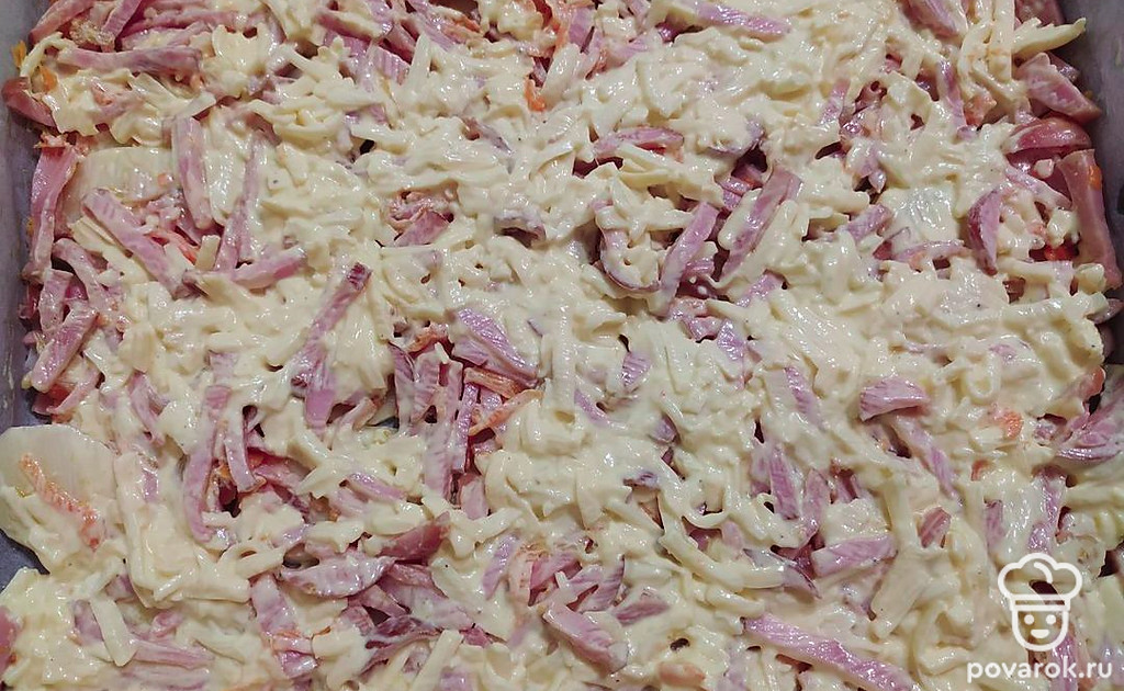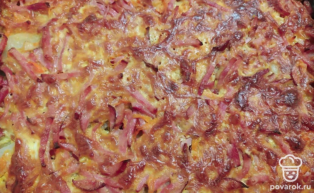 Деревенская запеканка — это простое в приготовлении и в то же время очень вкусное и сытное блюдо. Оно придется по вкусу как взрослым, так и детям. Нежный вкус картофеля, пропитанный насыщенным вкусом ветчины и пассированных овощей, прекрасно дополняет пикантный сметанный соус с сыром.