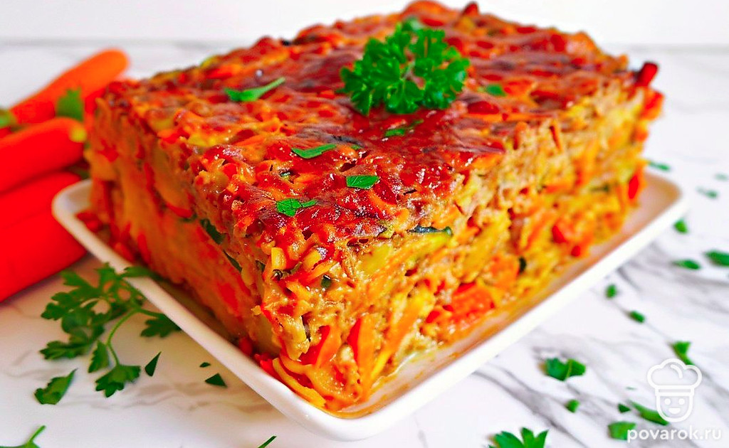 Печеночная запеканка очень полезная для здоровья и подходит тем, кто следит за фигурой. А если в нее добавить еще и кабачок с морковью, получается кладезь витаминов. Продукты прекрасно дополняют друг друга и легко усваиваются организмом. Яичные белки добавляют этому блюду пышную и воздушную текстуру. По желанию можете сделать на запеканке сырную корочку и полить сметанным соусом.