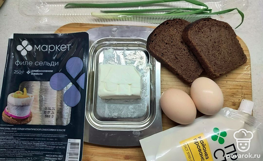 Подготовьте все ингредиенты. Яйца отварите и остудите. Сливочное масло должно быть размягченным.