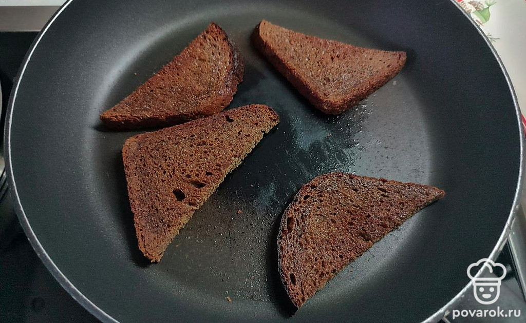 Хлеб нарежьте ломтиками. Смажьте тонким слоем сливочного масла. Обжарьте на разогретой сковороде с двух сторон.